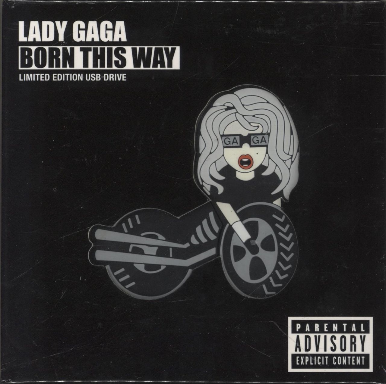 LADY GAGA Born This Way (Sealed Limited Edition 2011 UK USB memory stick containing 23 x MP3 256 kbps song files, including six remixes, three music videos, four episodes of Gagavision & bonus content including a Little Monster I.D. Card, pictures, digital album booklet (PDF) & more, housed in a custom die-cut box with foam insert to hold the drive, sealed from new)