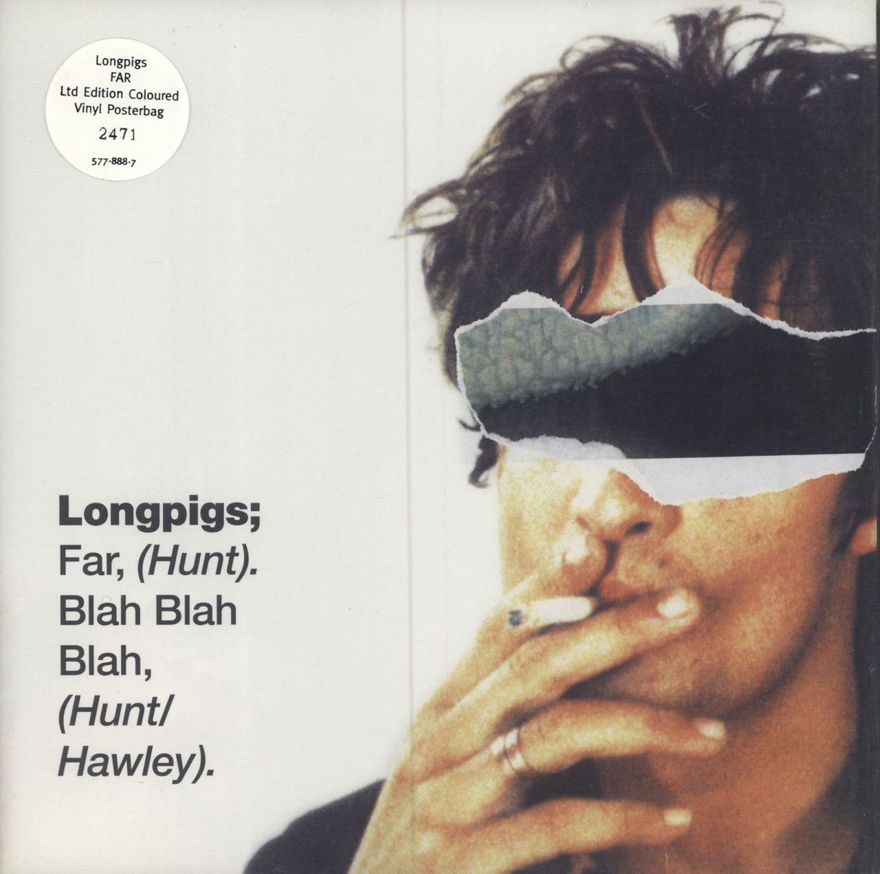 LONGPIGS Far (1996 UK limited edition 7" single pressed on Translucent Purple Vinyl, also including Blah Blah Blah, all wrapped within a large fold-outer poster with mailing card & an individually numbered clear polythene bag. Near Mint MUM71)