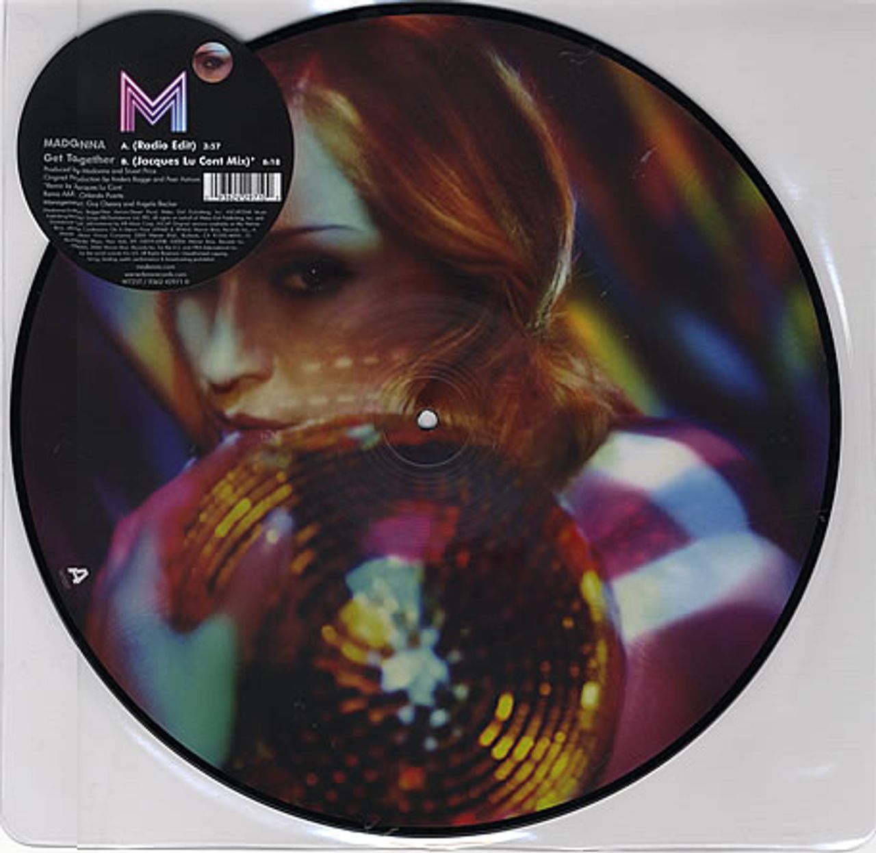 MADONNA Get Together (2006 UK limited edition 12" Picture Disc single taken from her 'Confessions On A Dance Floor' album, including Radio Edit and Jacques Lu Cont Vocal Edit. The disc remains in barely played condition in a title-stickered clear PVC sleeve W725T)