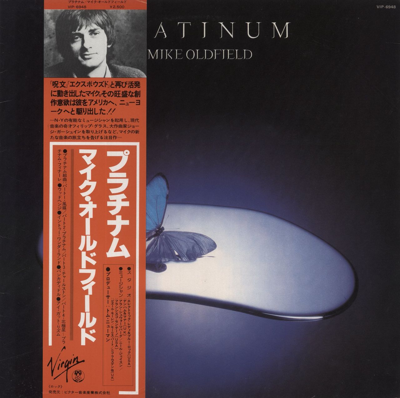 MIKE OLDFIELD Platinum (1979 Japanese Virgin 8-track vinyl LP, picture sleeve with insert printed with biography in Japanese and lyrics in English, complete with picture/discography obi-strip. The sleeve has the beginning of a seam split to the bottom, whilst the vinyl looks barely played VIP-6948)