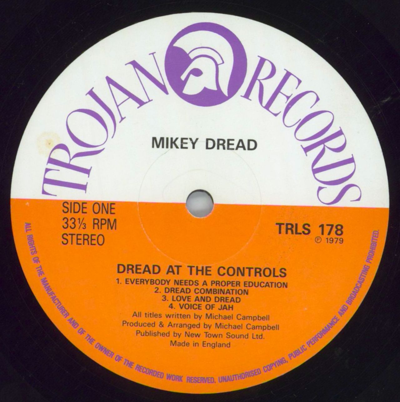 LP orange/white labe on Trojan by the seminal roots Rasta DJ,