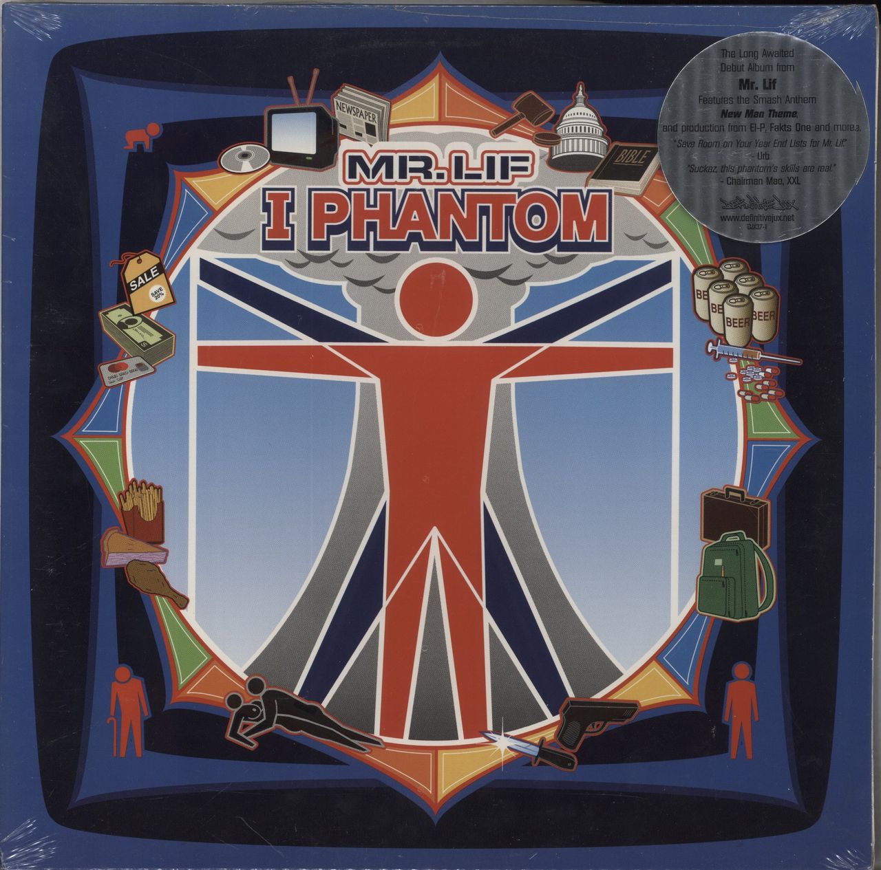 MR. LIF I Phantom - Sealed (2002 US 14-track double vinyl LP, with picture sleeve and fold out poster. Debut album from the Boston rapper, which recieved widespread critical acclaim upon release, and includes guest appearances from label matesAesop Rock and EL-P. The sleeve remains factory sealed DJX37)