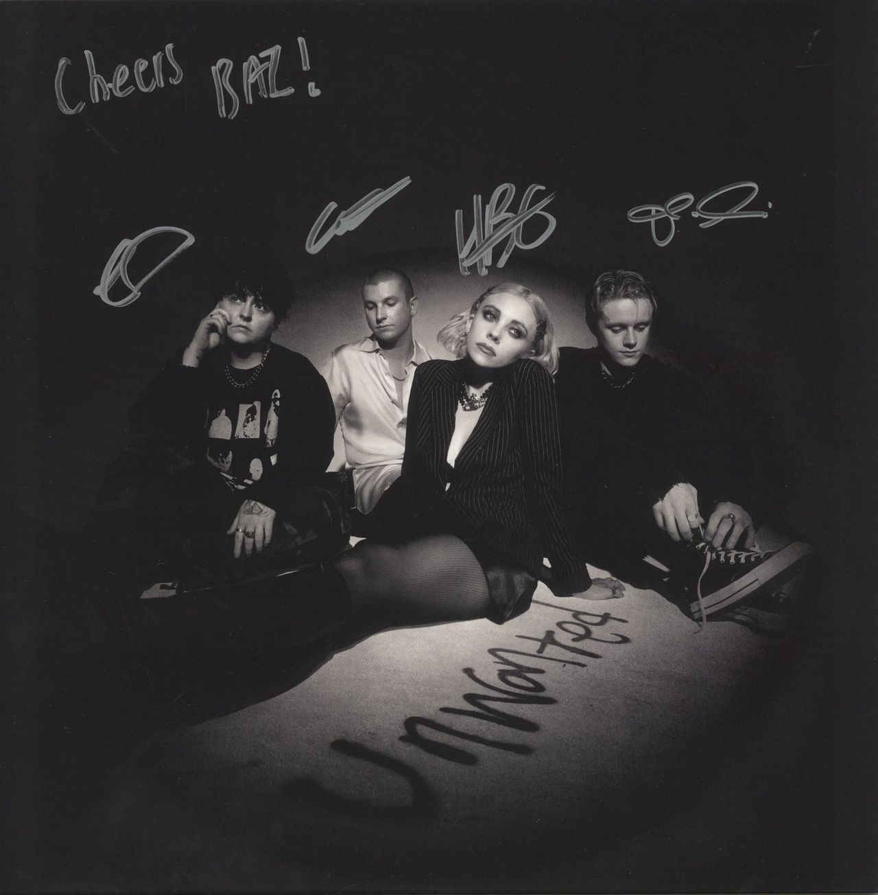PALE WAVES Unwanted (Fully Autographed 2022 UK Limited Edition 13-track LP pressed on Heavyweight Neon Pink Vinyl , exclusive to Indies & High Street Retailers. This collector's copy has been boldlysigned in silver marker pen on the front cover by the full group - Heather Baron-Gracie, Ciara Doran, Hugo Silvani & Charlie Wood - above each group member's respective image & is dedicated to its one previous owner along the top. Complete with the illustrated lyric inner. The inner shows a little seam stress and the picture sleeve displays minimal wear. The vinyl is Near Mint. Ideal for framing! DH01399)