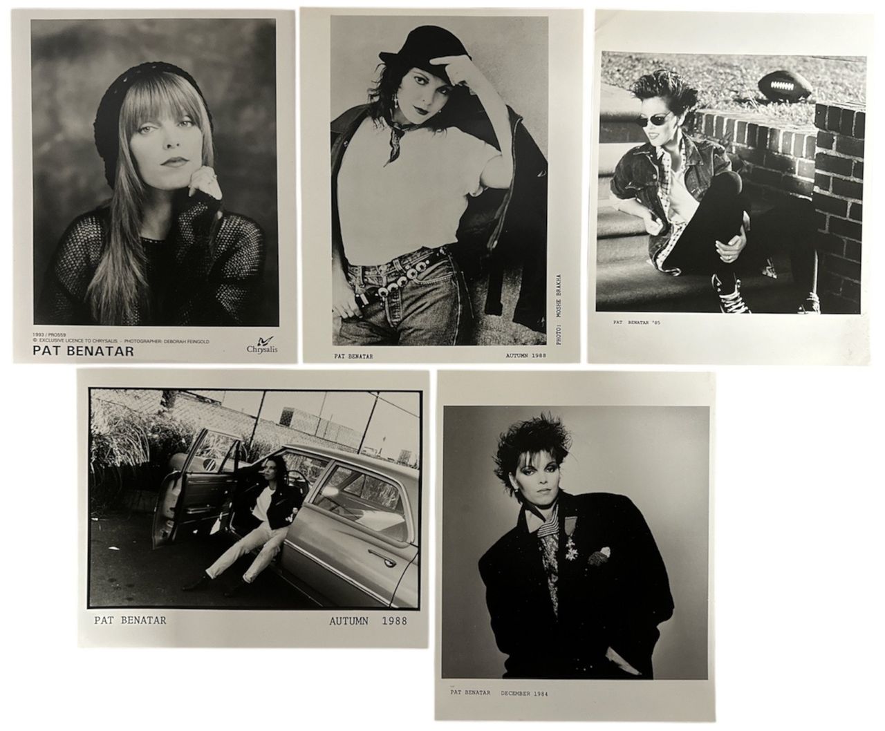 PAT BENATAR Five Publicity Photos (A fantastic selection of five black & white publicity prints [each measuring 8" x 10"] issued for promotional use by Chysalis Records, with stunning close-up shots taken by Moshe Brakha and Deborah Feingold. The others appear uncredited. This wonderful set will be a great addition to any Pat Benatar collection and would look fantastic framed!)