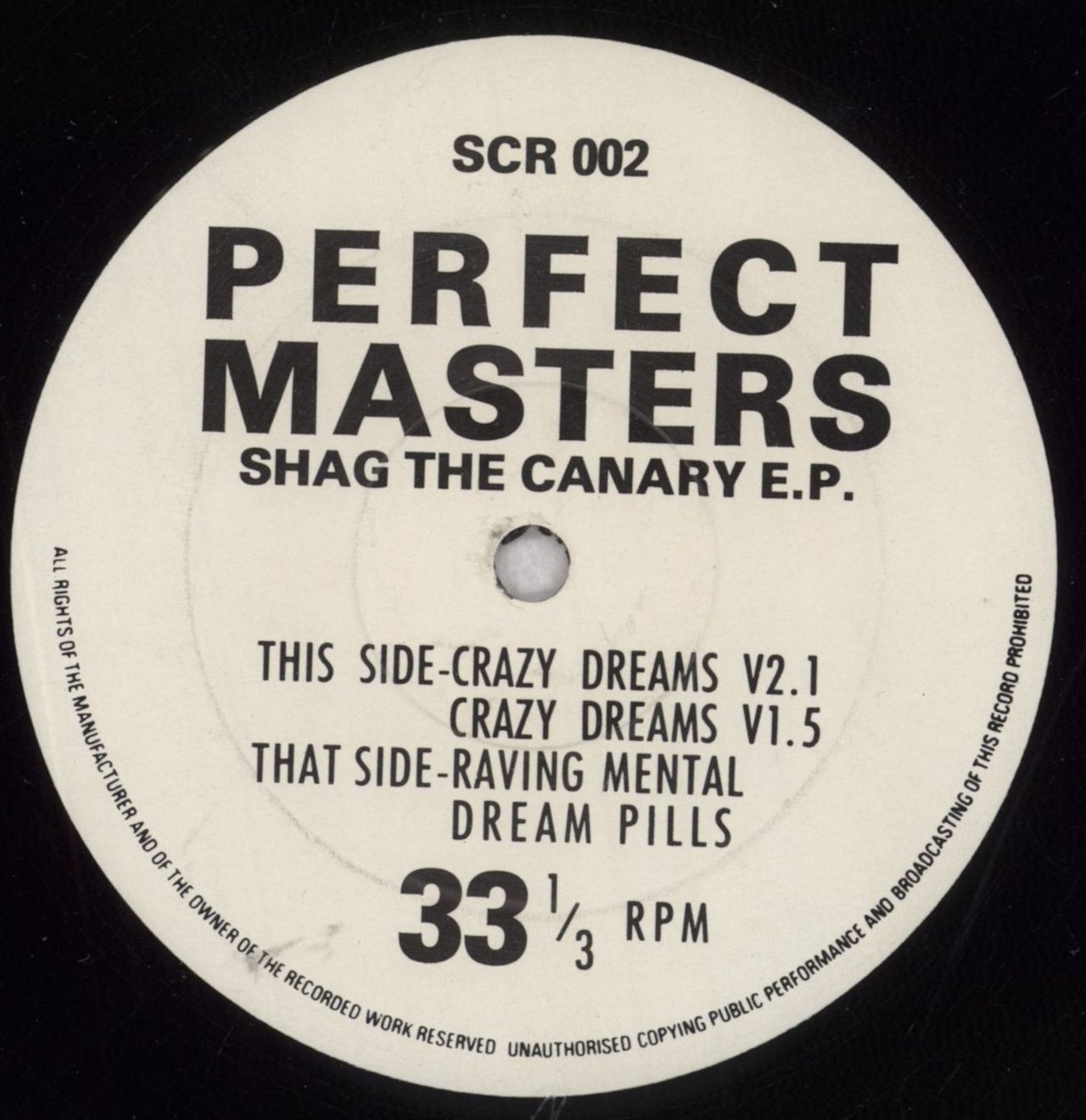 PERFECT MASTERS Shag The Canary E.P. (1992 UK 4-track 12" vinyl single, a nice slice of early nineties breakbeat, plain die-cut sleeve. This copy is Near Mint SCR002)