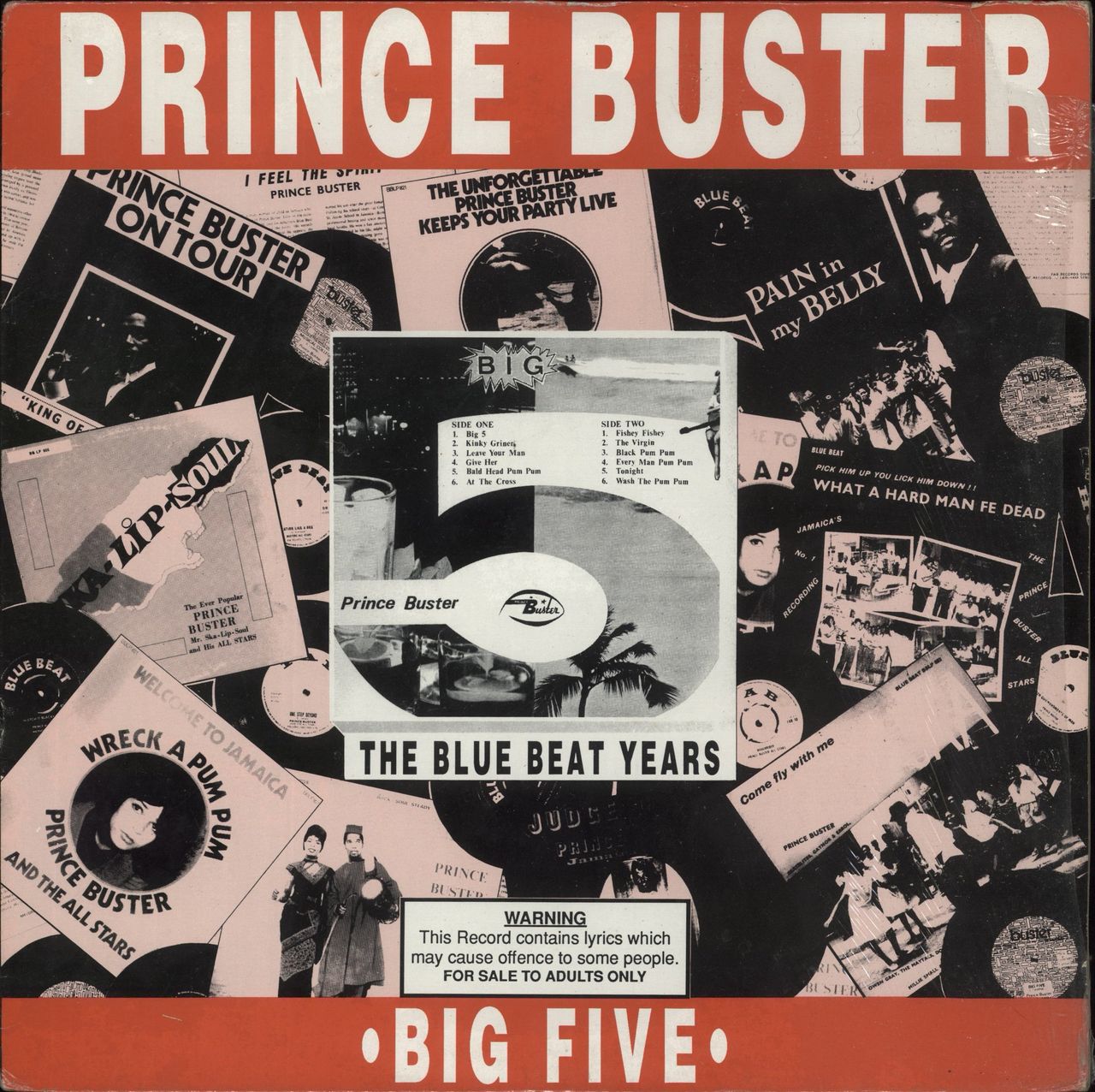 PRINCE BUSTER Big Five (1988 UK issue of the 1972 12-track vinyl LP, risque Ska including Bald Head Pum Pum, The Virgin and Wash The Pum Pum, picture sleeve with inner featuring the original artwork. The sleeve shows light wear and is still inits opened shrinkwrap, whilst the vinyl is Excellent with few signs of play SKABBLP3)