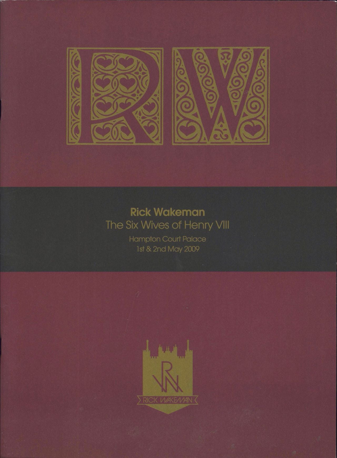 RICK WAKEMAN The Six Wives Of Henry VIII (Official 2009 UK 32-page programme for the performances at Hampton Court Palace on 1st & 2nd May 2009. Features the story of the musical, credits and great photographs, with maroon, black and gold cover)