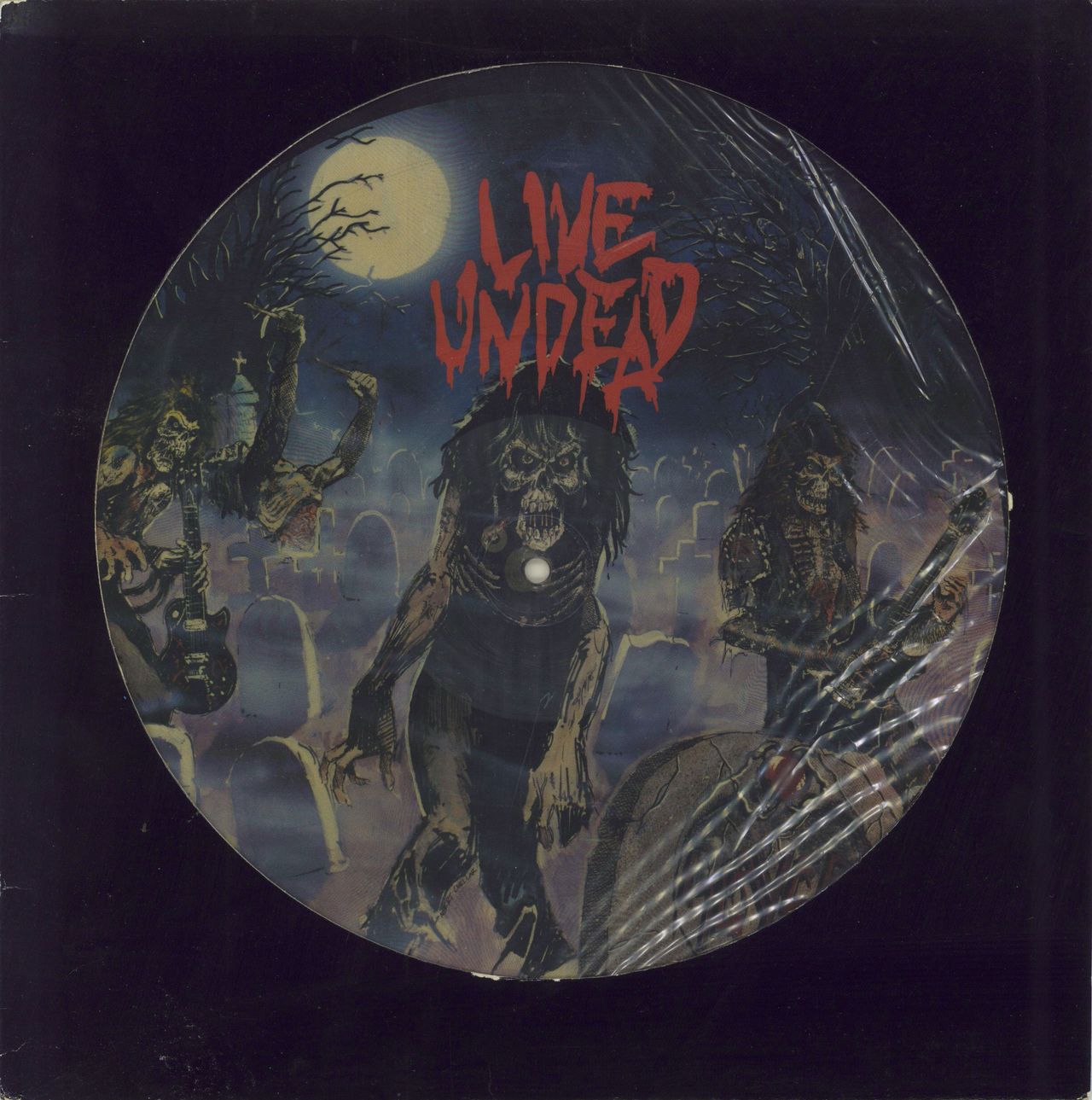 SLAYER Live Undead (1985 US liimted edition 6-track Picture Disc LP, featuring three tracks recorded live in New York and three studio favourites, hous in the original die-cut sleeve. The sleeve displays some minor wear mostly to the edges and the disc looks barely played MBR1037)