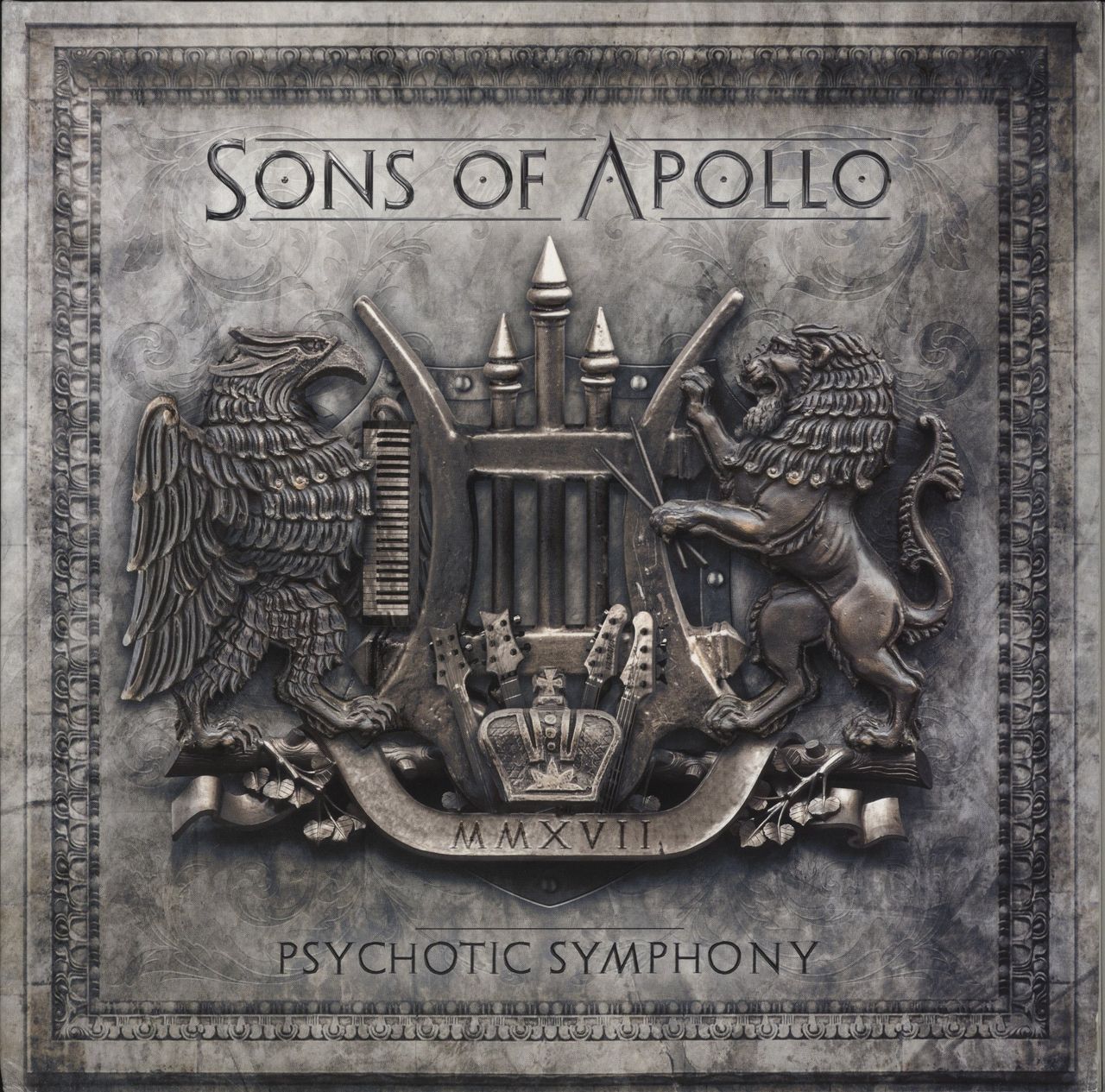SONS OF APOLLO Psychotic Symphony (2017 UK/EU limited edition 9-track three sided 2-LP set pressed on Audiophile quality 180gram Heavyweight Black Vinyl. The debut studio album by the American supergroup featuring Mike Portnoy, Derek Sherinian, Billy Sheehan, Jeff Scott Soto and Ron 'Bumblefoot' Thal housed in a gatefold picture sleeve with lyric insert . Although not sealed, this remains in a 'near mint' condition)