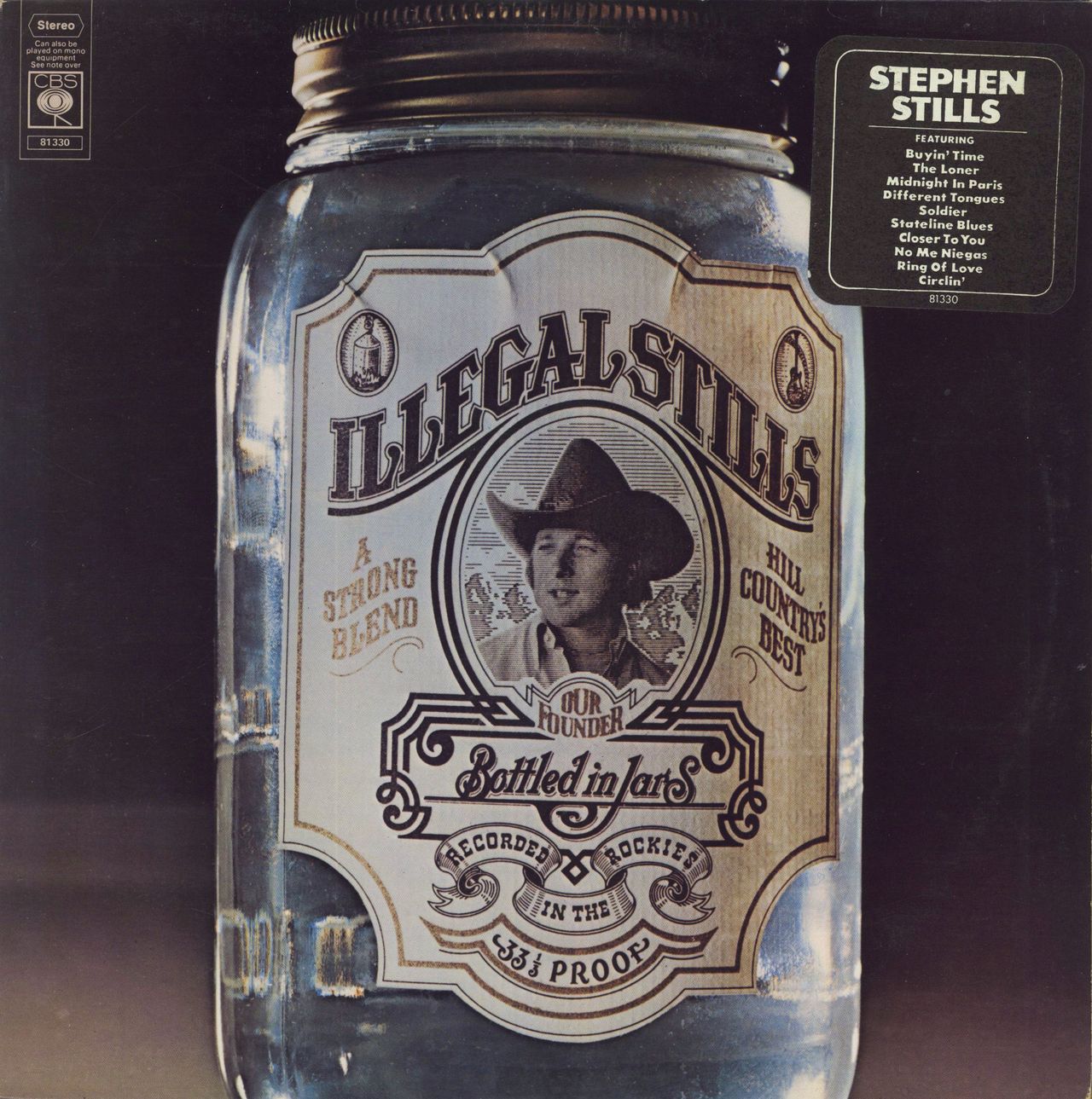 STEPHEN STILLS Illegal Stills (1976 UK 10-track vinyl LP, including the singles Buyin' Time and The Loner. The picture sleeve retains its original song hype sticker to the front and comes complete with its lyric insert while the vinyl looks barely played CBS81330)