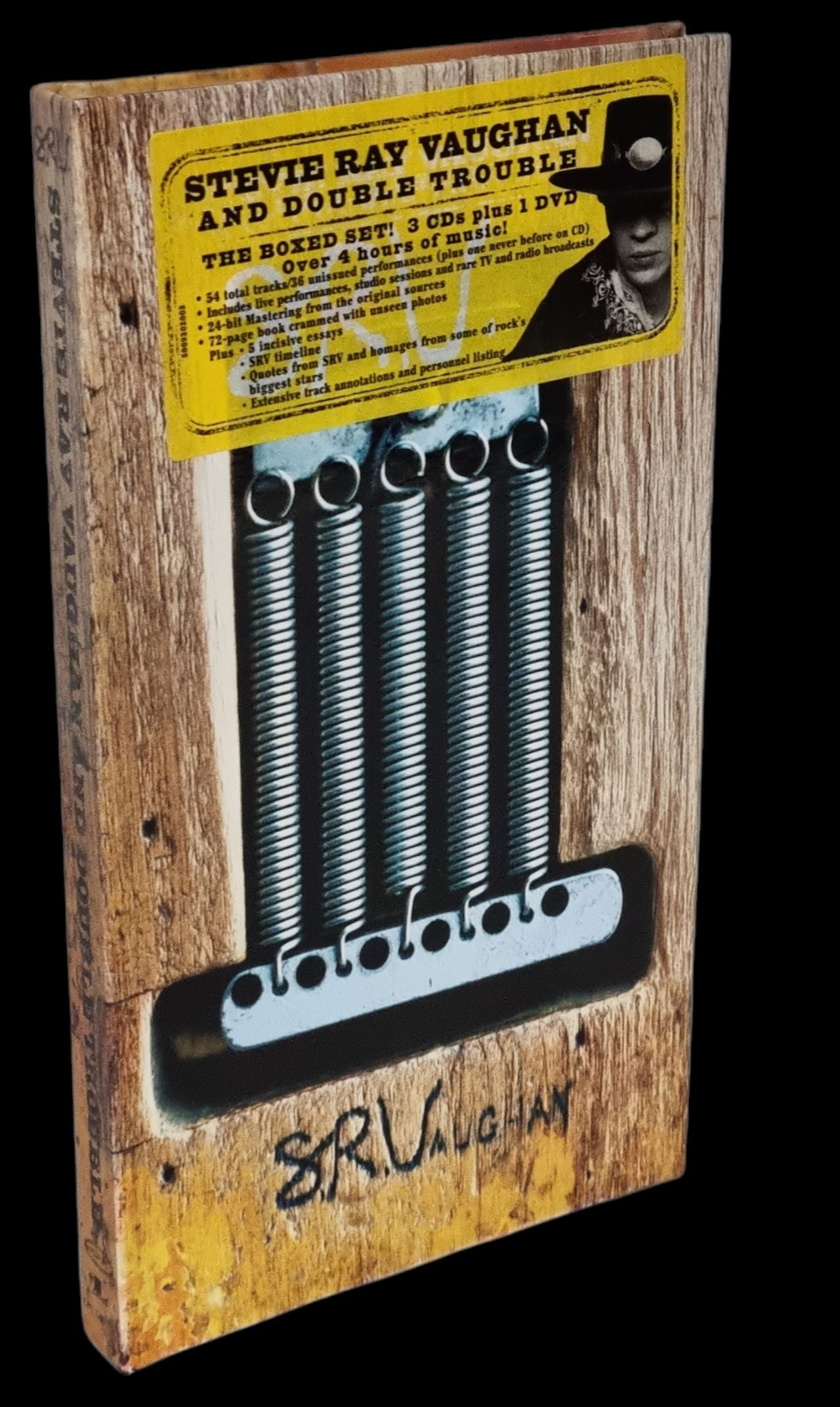 STEVIE RAY VAUGHAN & DOUBLE TROUBLE S.R.V. (2000 UK box set featuring 3 CDs & 1 DVD - tracks chronicle his whole career drawn from studio sessions & live performances & include many previously unreleased versions with a special 6-track DVD EPrecorded live in Texas 1989. Comes housed in a digibook with large hype sticker attached & 72-page integral booklet including photos, quotes & more. The packagng & the discs appear in excellent condition with just a few light signs of play)