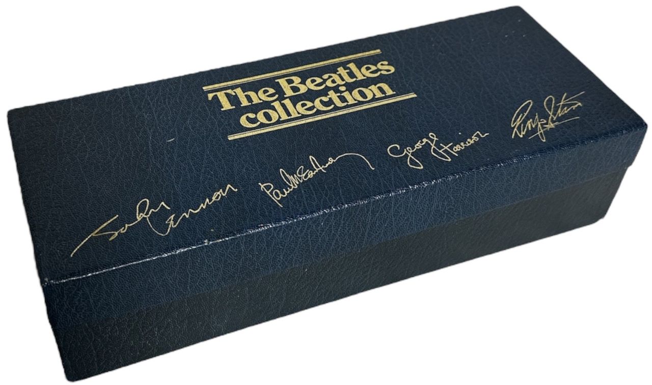 THE BEATLES The Beatles Collection (1978 UK Thirteen cassette box set, comprising all the band's studio LPs from Please Please Me through to Let It Be plus the 17-track 'Rarities' collection. Each cassette comes in their own case with card picture inserts, all housed in the 12" x 5" x 3" embossed leather effect hinged box. Apart from a few signs of storage wear this copy is in superb condition TCBC13)