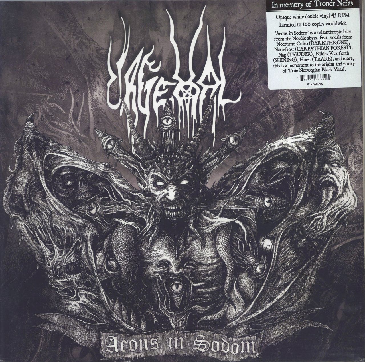 URGEHAL Aeons In Sodom (2016 French limited edition 12-track 2-LP set pressed on Opaque White Vinyl. The seventh and final album from the Norwegian black metal band. Housed in a gatefold picture sleeve with lyrics inside, and in a hype-stickered protective sleeve. Both sleeve & vinyl remain in a 'near as new' condition SUA063LP)
