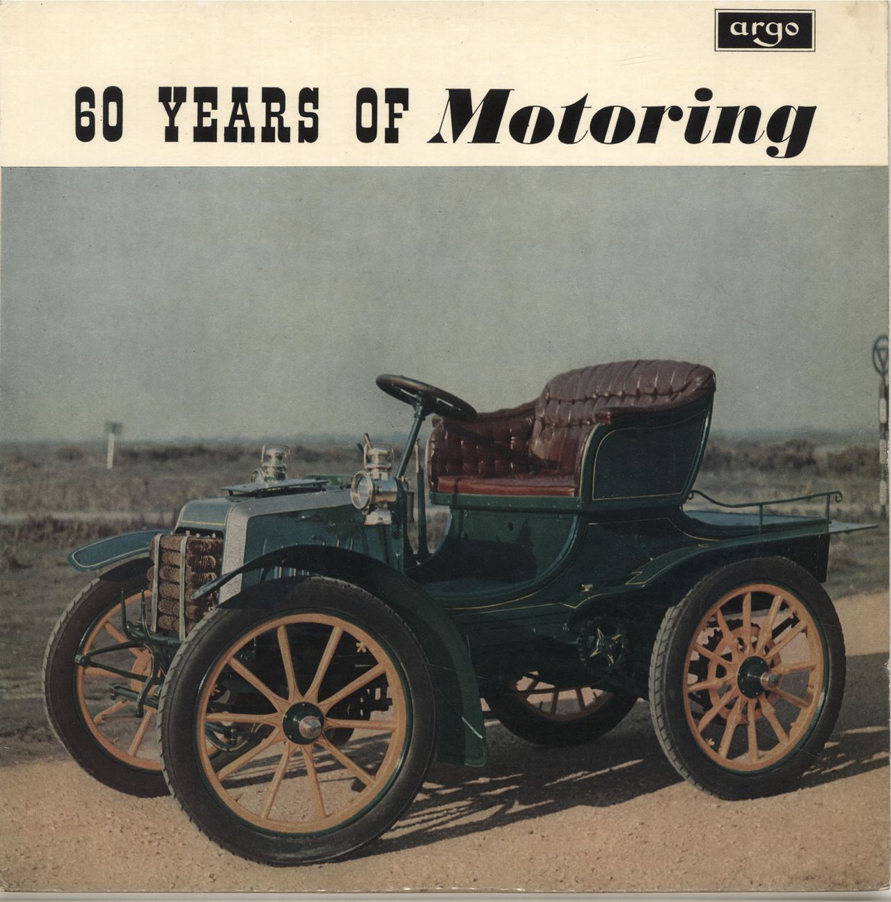 VARIOUS 60 Years Of Motoring (Wonderful 1962 UK Mono LP made in association with the Montagu Motor Museum, narrated by Raymond Baxter featuring the sounds of cars from the 1895 1 h.p. Knight to the 1956 2½ litre BRM, complete with lavishly illustrated twenty four page booklet, fully laminated pinched spine picture sleeve. The booklet shows just a little light wear with a small tear at the spine, the sleeve shows minimal shelfwear & the vinyl remains in excellent condition with fewsigns of play. Given that the album itself is over fifty five years old, this is an amazing voyage into the motor cars of yesteryear NF2)