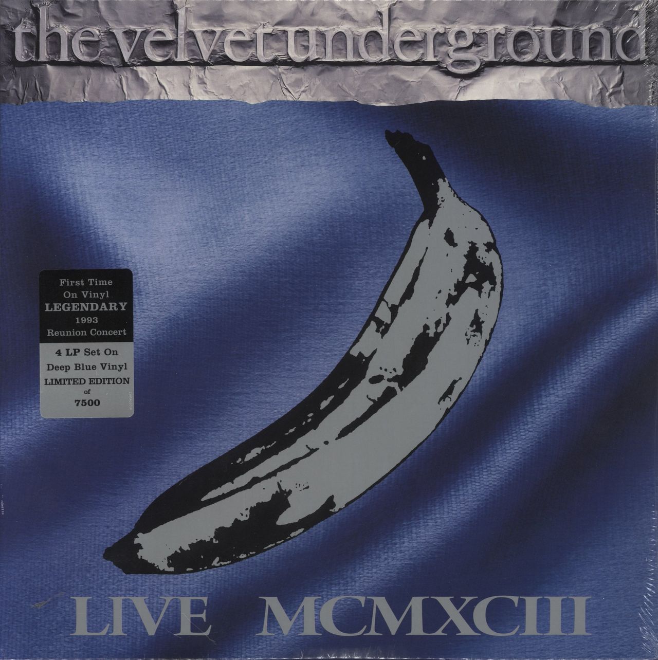 VELVET UNDERGROUND Live MCMXCIII (2014 UK/EU) 23 track 4 x LP live set pressed on<180g DEEP BLUE>vinyl. First Time On Vinyl, this legendary 1993 Reunion Concert featuring all the classics is housed in a gatefold picture sleeve and is ***Limited to only 7500 copies***. Sealed and unplayed within the hype-stickered shrink R145464)